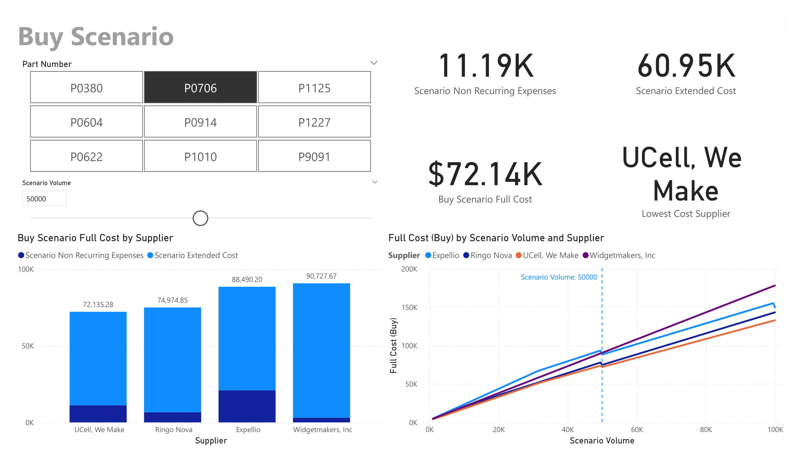 Created an interactive quote analysis tool to optimize procurement strategies by consolidating supplier and internal data through custom ETL pipelines. Utilized complex DAX measures to model production scenarios, delivering a dashboard that identified opportunities for 18% in simulated procurement savings.